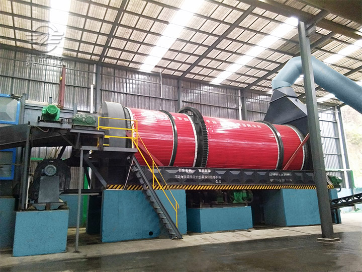有機(jī)肥烘干機(jī)主要是通過(guò)安裝在尾部的引風(fēng)機(jī)將烘干生產(chǎn)線(xiàn)前段熱風(fēng)爐中的熱量不斷抽向烘干機(jī)筒體內(nèi)部,然后在筒體的不斷轉(zhuǎn)動(dòng),使其物料在旋耙打散的裝置下不斷進(jìn)行打散、攪拌,使其物料與熱風(fēng)充分接觸,從而可以加快物料內(nèi)部水分的蒸發(fā)。