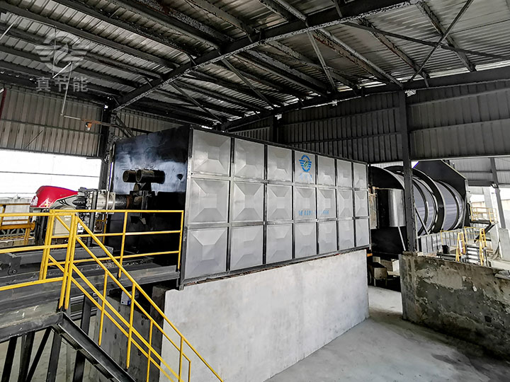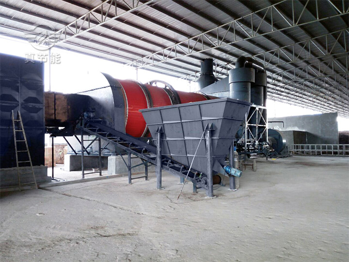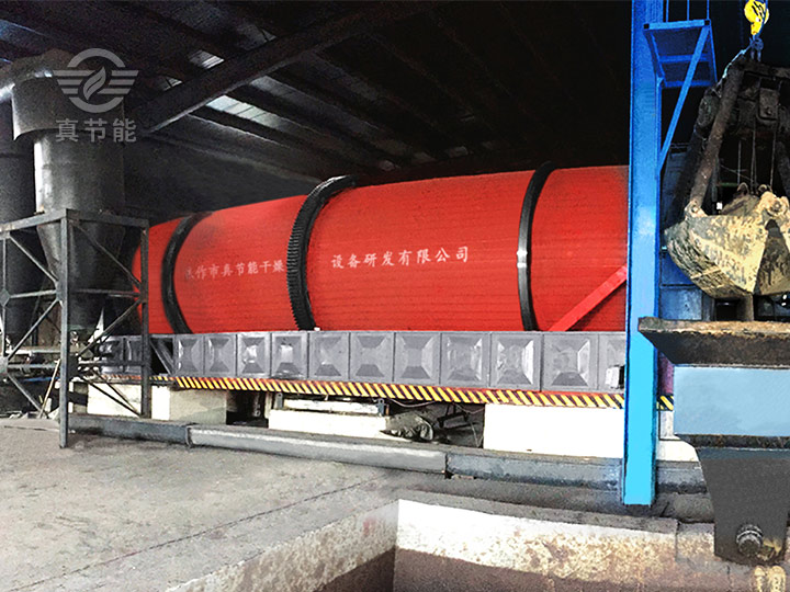 其工藝流程:熱風(fēng)爐是產(chǎn)生熱能的場所。將燃料加入熱風(fēng)爐中,通過燃燒產(chǎn)生高溫?zé)峤橘|(zhì),為烘干機(jī)主體提供連續(xù)穩(wěn)定的熱量。然后再由上料裝置(皮帶運(yùn)輸機(jī)、密封刮板輸送機(jī)或螺旋輸送機(jī))均勻連續(xù)的將物料送入烘干機(jī)內(nèi)部。物料與高溫?zé)峤橘|(zhì)在筒體內(nèi)部進(jìn)行熱交換,從而將物料中的水分蒸發(fā)出來,實(shí)現(xiàn)物料從高濕高粘轉(zhuǎn)變?yōu)椴粷癫徽?。達(dá)到烘干要求的物料,經(jīng)過出料裝置運(yùn)送出來進(jìn)行統(tǒng)一打包、裝載。而在烘干過程中產(chǎn)生的煙氣、粉塵等氣體,通過引風(fēng)機(jī)將其輸送至除塵設(shè)備當(dāng)中進(jìn)行凈化、過濾、降塵,實(shí)現(xiàn)氣體的達(dá)標(biāo)排放。整個(gè)烘干生產(chǎn)線一體化聯(lián)動(dòng),共同完成物料的烘干。
